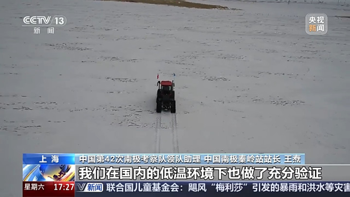 中国第42次南极考察队领队助理、中国南极秦岭站站长王焘:这个载具系统是今年首次深入东南极腹地开展工程验证和任务应用,主要承担的任务是人员快速转移、物资高效运输、地面应急保障,包括沿线路书、路谱的智能采集功能。